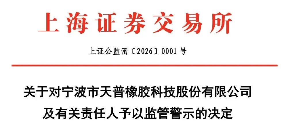 此前在1月5日,上交所也发布关于对宁波市天普橡胶科技股份有限公司及有关责任人予以监管警示的决定。